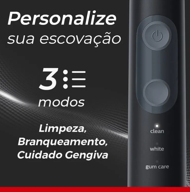 O modelo conta com 3 modos de uso — Limpeza, Branqueamento e Cuidado com a Gengiva — permitindo personalizar a escovação de acordo com a necessidade do dia. Seu sensor de pressão ajuda a proteger as gengivas, avisando quando a força aplicada está acima do ideal, enquanto o temporizador inteligente de 2 minutos e os alertas a cada 30 segundos facilitam a higienização equilibrada de todas as áreas da boca.