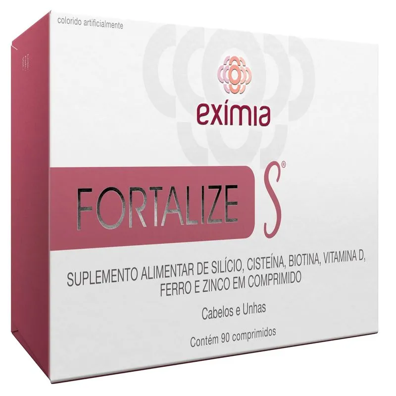 informações do produto Eximia Fortalize S com 90 comprimidos é um suplemento alimentar que contém Cisteína, Biotina, Vitamina d, Ferro e Zinco, que juntos ajudam no fortalecimento de cabelos e unhas, auxiliando também em um crescimento forte e saudável. Eximia Fortalize S com 90 comprimidos não é recomendado para pessoas que apresentem qualquer tipo de alergia aos componentes da fórmula.Modo de uso:Habitualmente é recomendado ingerir 1 comprimido ao dia, ou conforme orientação médica. ficha técnica Fabricante Eximia
