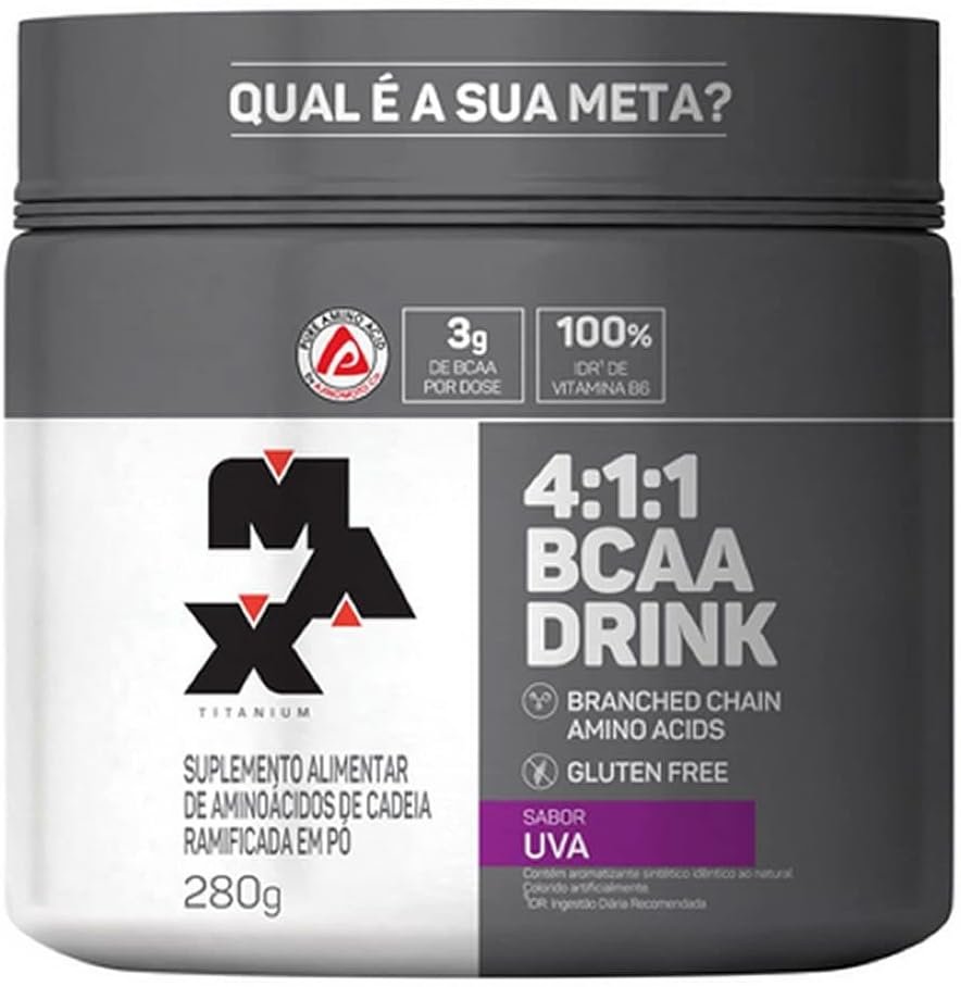 Em até 1x de R$260,99 sem jurosEm até 12x de R$24,68 com juros À vistaR$234,89no PixMax Titanium Bcaa 4: 1: 1 – 280G Drink Uva